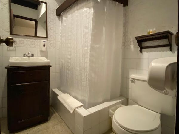 This suite features a seating area, tile/marble floor and private entrance, king bed, desk and closet. Has flat screen tv, hot water and WIFI.
