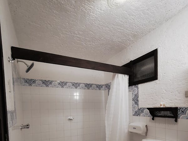This simple room has a double bed, desk and closet. Has flat screen tv, hot water and WIFI.