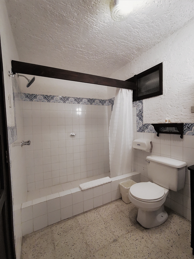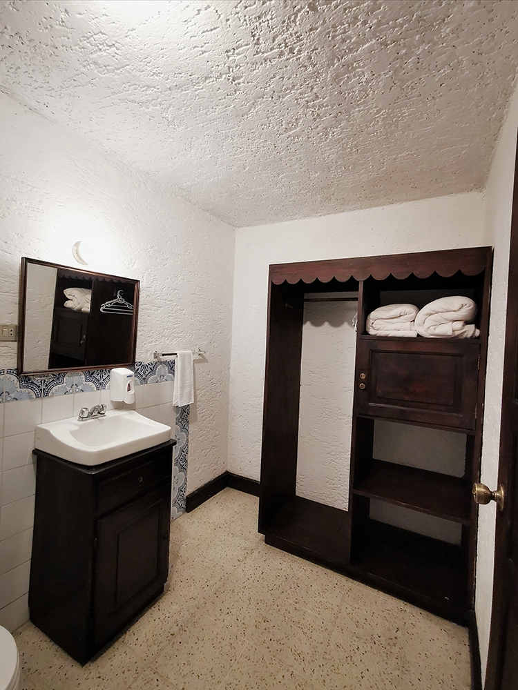 This simple room has a king double bed, desk and closet. Has flat screen tv, hot water and WIFI.