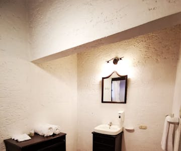 This suite features a seating area, tile / marble floor, queen bed, desk and built-in wardrobe. It has a flat screen TV, hot water in a spacious bathroom and WIFI.